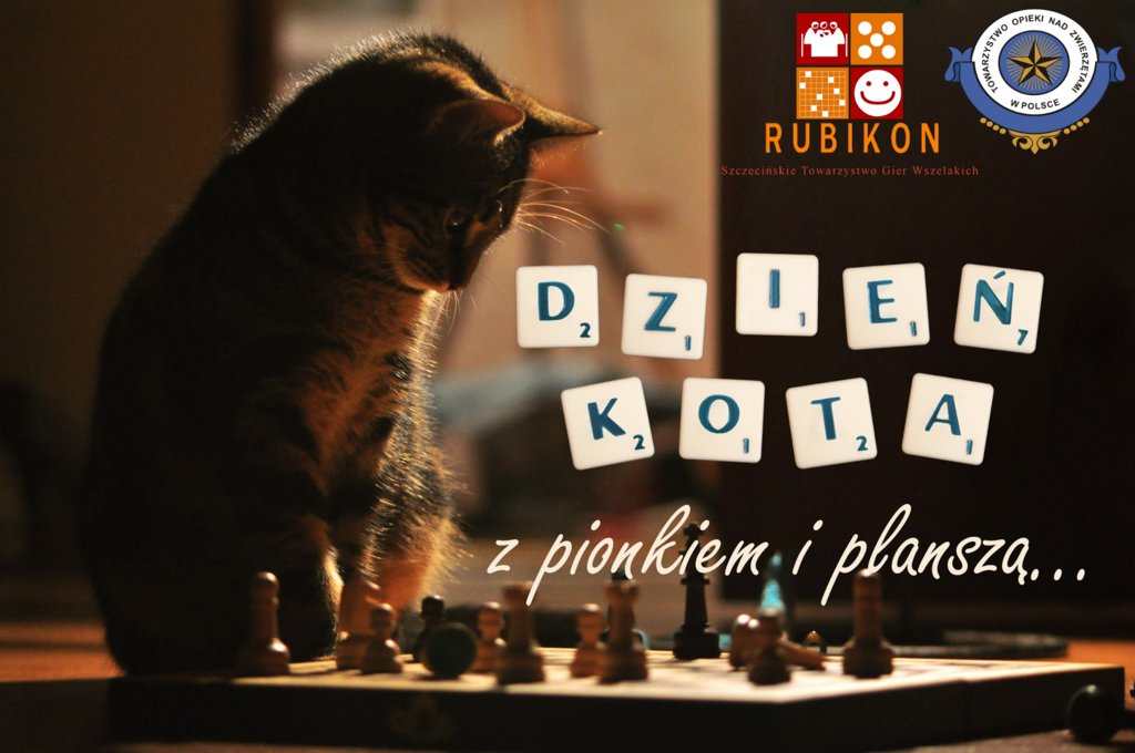 Szczeciński oddział Towarzystwa Opieki Nad Zwierzętami (www, Facebook) i Towarzystwo Gier Wszelakich RUBIKON (www, Facebook) organizują z okazji Międzynarodowego Dnia Kota otwarte spotkanie z grami planszowymi.