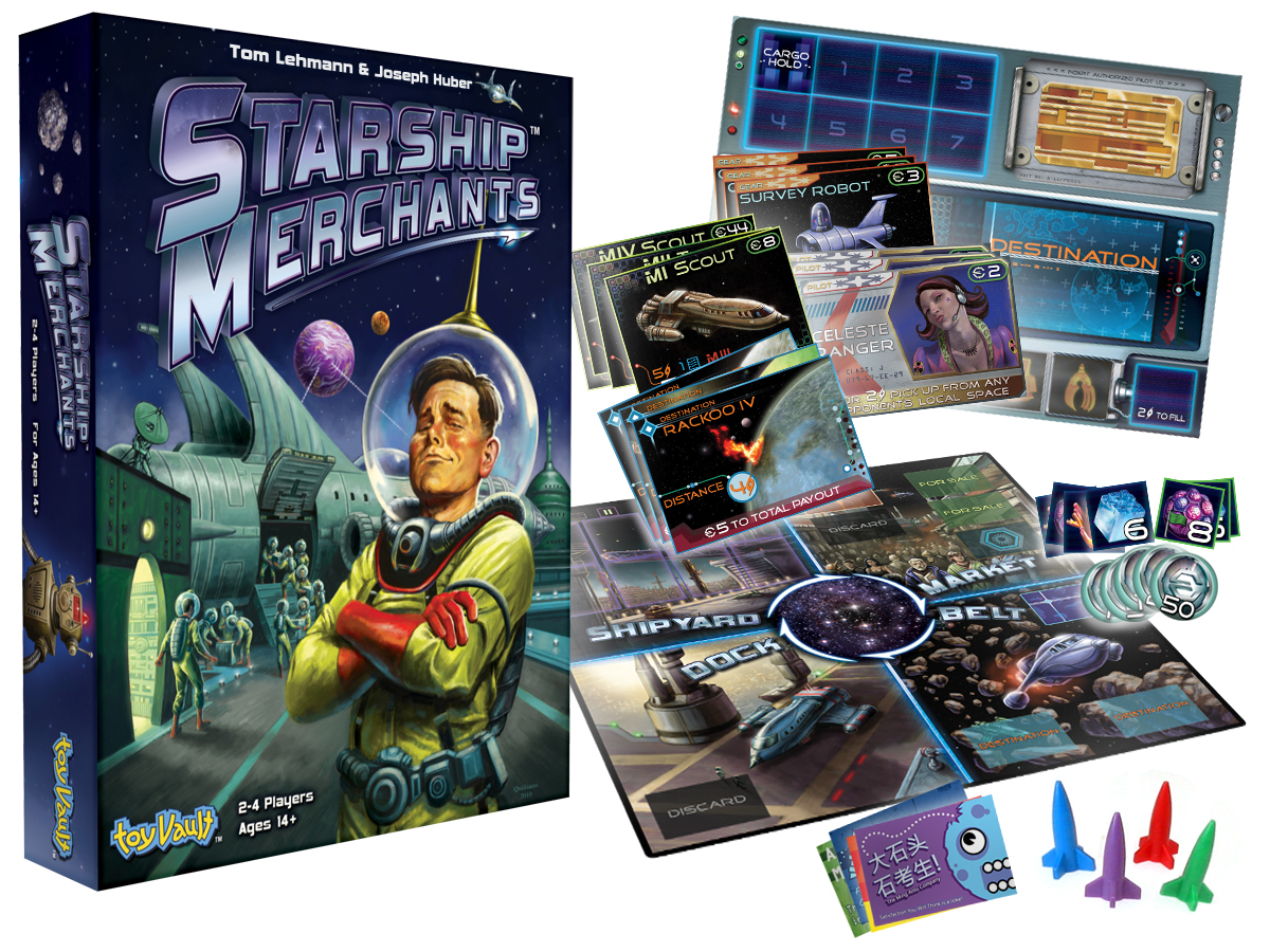 Wydawnictwo Toy Vault1 zapowiedziało wydanie w maju nowej gry Starship Merchants. W grze autorstwa Toma Lehmanna (autora Race for the Galaxy) i Josepha Hubera będziemy wyszukiwać i eksploatować złoża najcenniejszych surowców w galaktyce, a następnie dostarczać je do klientów, równocześnie rozwijając naszą firmę za zarobione kredyty.