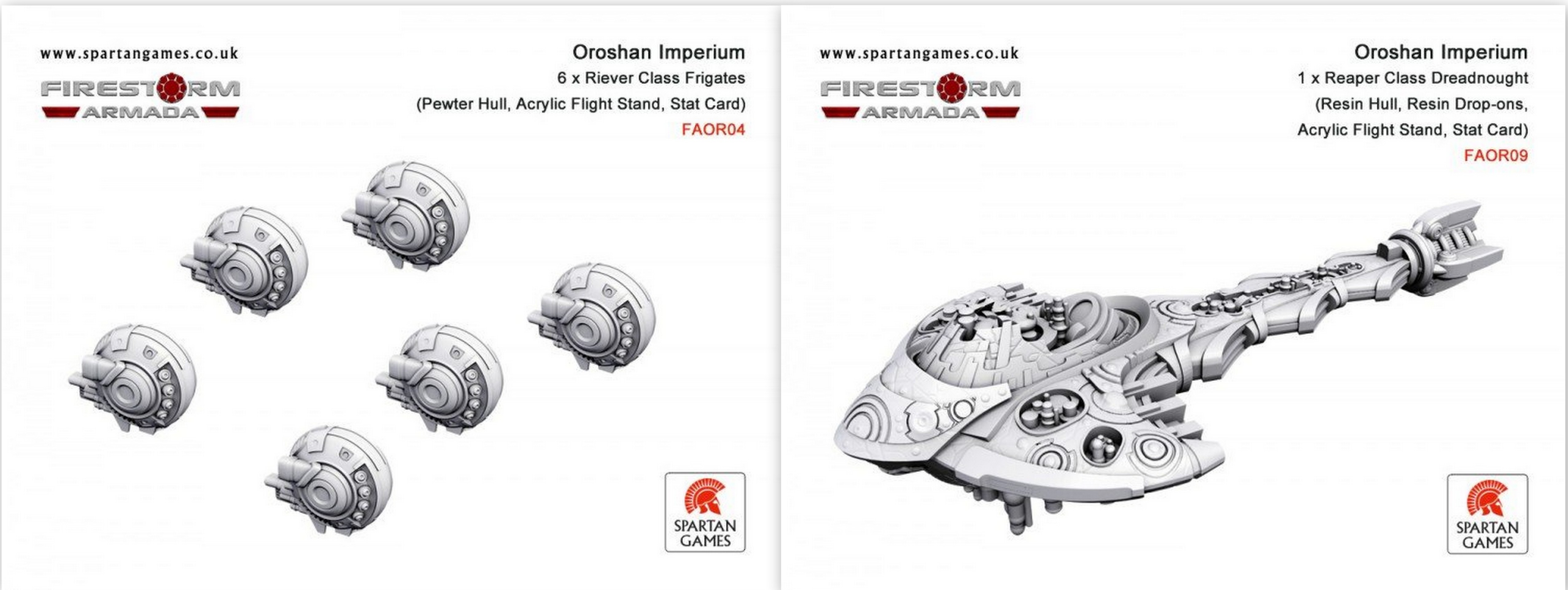 Gracze Firestorm Armada muszą się przygotować na kolejny atak. Zagrożenie dla ich portfeli spowoduje nowa dostawa okrętów z niezawodnych stoczni Spartan Games. W tym miesiącu szczególnie ucieszą się ci, którzy wybrali nową rasę Oroshan. Siły kosmicznej frakcji wzbogacą się zarówno o potężnego dreadnaughta klasy Reaper, jak i o eskadrę sześciu fregat klasy Riever.