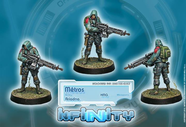 Jeśli chodzi o uzupełnienia, to siły Ariadny wzbogaciły się o model Metros z ciężkim karabinem maszynowym. Model może nie grzeszy dynamiką, ale ładnie współgra z pozostałymi członkami oddziału. Ta wersja uzbrojenia była od dawna oczekiwana przez graczy armii sektorowej Merovingów, dopełniając zgrabny, pięcioosobowy Linked Team francuskiej piechoty.