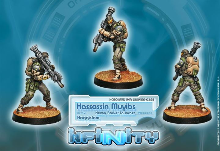 Również Haqqislam, a dokładnie armia sektorowa Asasynów ma powód do radości. W jej szeregi trafi Muyib uzbrojony w całkowicie nową broń, ciężką wyrzutnię rakiet. W chwili, kiedy piszę ten tekst Corvus Belli nie zamieściło jeszcze parametrów tej broni, ale z zapowiedzi wynikało że będzie to urządzenie o nieco innym działaniu niż standardowe wyrzutnie rakiet. Niezależnie od parametrów, prezentuje się ona bardzo ciekawie, a model jest skomponowany naturalnie i jak na tego typu broń, dość dynamicznie.