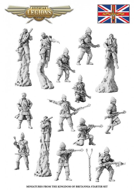 Aby rozpocząć przygodę z Dystopian Legions potrzebne nam będą zestawy startowe. W każdym znajdziemy przede wszystkim kilkanaście zgrabnych modeli, trzymających poziom, do którego przyzwyczaiła nas już brytyjska firma. Wśród dostępnych jednostek w zestawach startowych znajdzie się zawsze oddział podstawowej piechoty wraz z dowódcą i żołnierzem z bronią wsparcia. Do tego oczywiście oficer dowodzący całością i po kilku przedstawicieli elitarnych formacji. W każdym zestawie jest też jeden imienny bohater danej frakcji, dający naszej armii nieco kolorytu. Zważywszy na różną liczbę modeli w poszczególnych zestawach, należy się spodziewać, że ich wartość punktowa jest zbliżona.