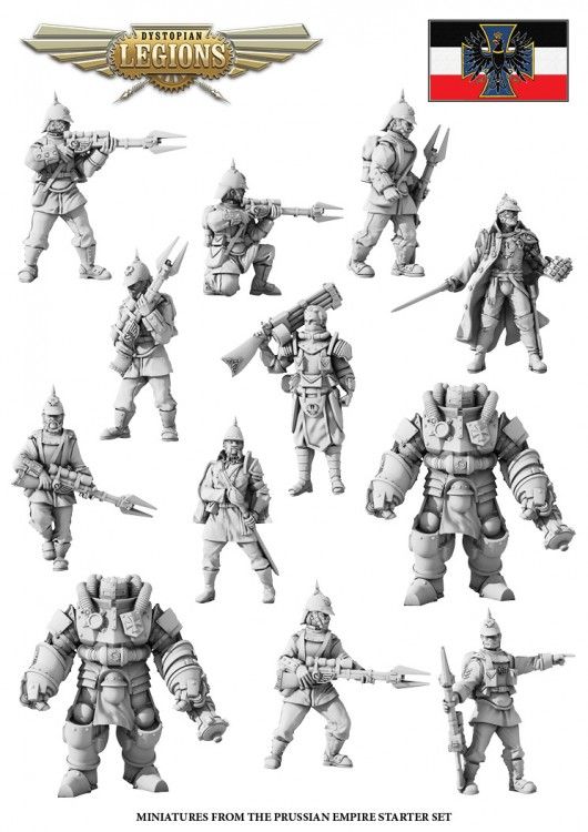 Pruski zestaw startowy jest mocno najeżony pikielhaubami i bagnetami tesla. Najlepiej prezentuje się oberst Werner Hahl, uzbrojony w nowoczesne, napędzane generatorem Tesli mechaniczne ramię i klasyczny pruski pałasz. Pod swoimi rozkazami ma równie klasycznego, pruskiego oficera, oraz sześciu zbrojnych w bagnety Tesli grenadierów z sierżantem na czele. Wsparcie tej zabójczej ekipie zapewnia specjalista z wielolufową strzelbę Verling, oraz „Krzyżacy”. Dwa wspomagane pancerze zakonu Teutonic Knights. Całość zestawu ma w sobie tę atmosferę pruskiej buty i dyscypliny, z której wybijają się jedynie dziwne pancerze Krzyżaków.