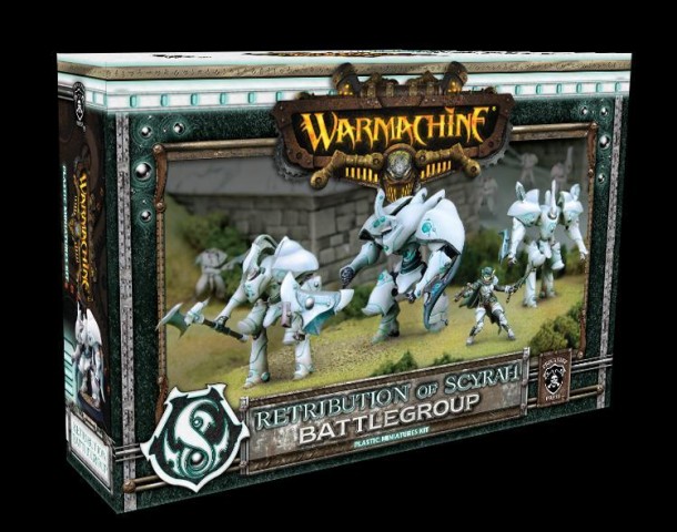 Na koniec zostało nam pudełko o dźwięcznej nazwie Retribution of Scyrah Battlegroup Starter. Zostało na koniec, bo zwyczajnie nie lubię elfów. Możecie mnie w tym temacie nazwać rasistą, ale uczciwym. Uczciwie więc powiem, że ten zestaw prezentuje się naprawdę elegancko. Co w środku? Przede wszystkim plastikowa warcasterka Kaelyssa Night’s Whisper. Naprawdę fajna i moim zdaniem bardziej dynamiczna niż jej wersja metalowa. Towarzystwa dotrzymają jej trzej Myrmidoni: ciężki, potężnie uzbrojony Manticore, oraz dwa lekkie, lecz zabójczo szybkie warjacki typu Griffon i Chimera. W sumie siła ognia, szybkie, zabójcze w walce wręcz jednostki, oraz warcaster którego moc pozwoli podkraść się do niemal każdego przeciwnika. Całkiem ciekawy wybór na początek.